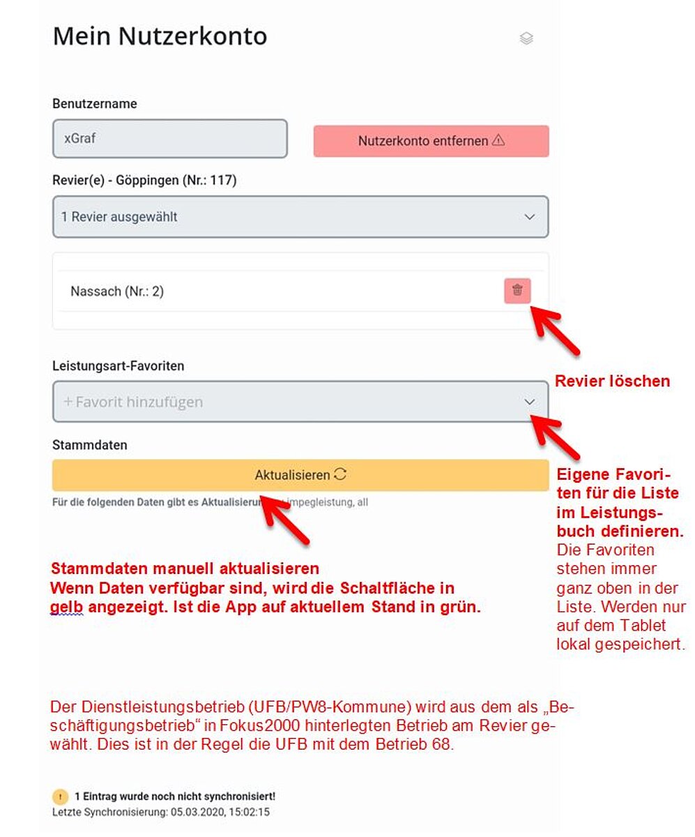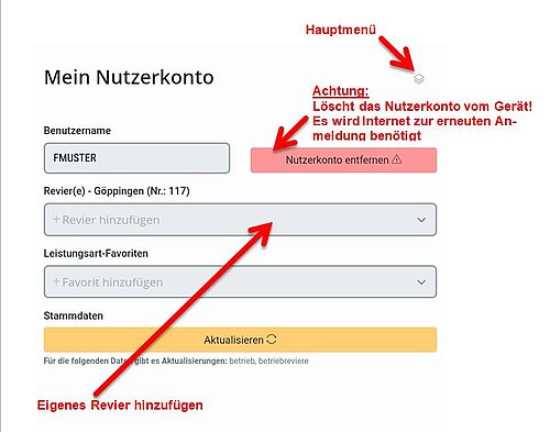 Im Nutzerkonto müssen Sie nach der Anmeldung ein Revier wählen.