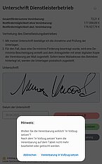 Die Unterschrift sollte für eine einfache Handhabung mit dem Stift des Samsung-Tablets erfolgen.