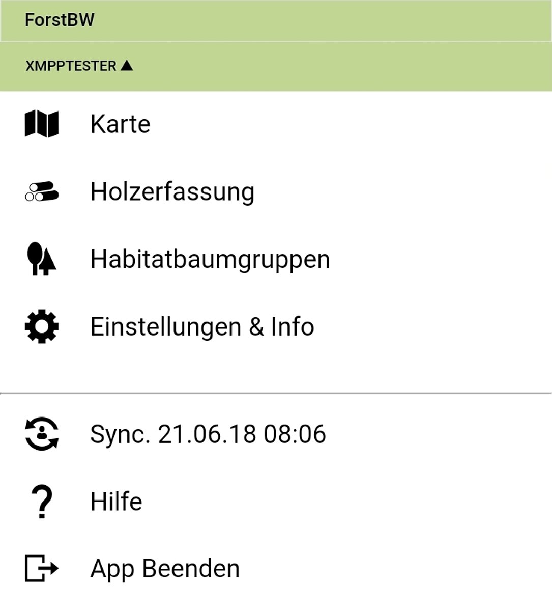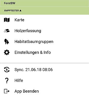 Über das Hauptmenü können Sie die Hauptmodule der App erreichen.