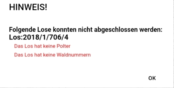 Voraussetzung! Nur Lose mit Polter/n und Waldnummer/n können abgeschlossen werden.