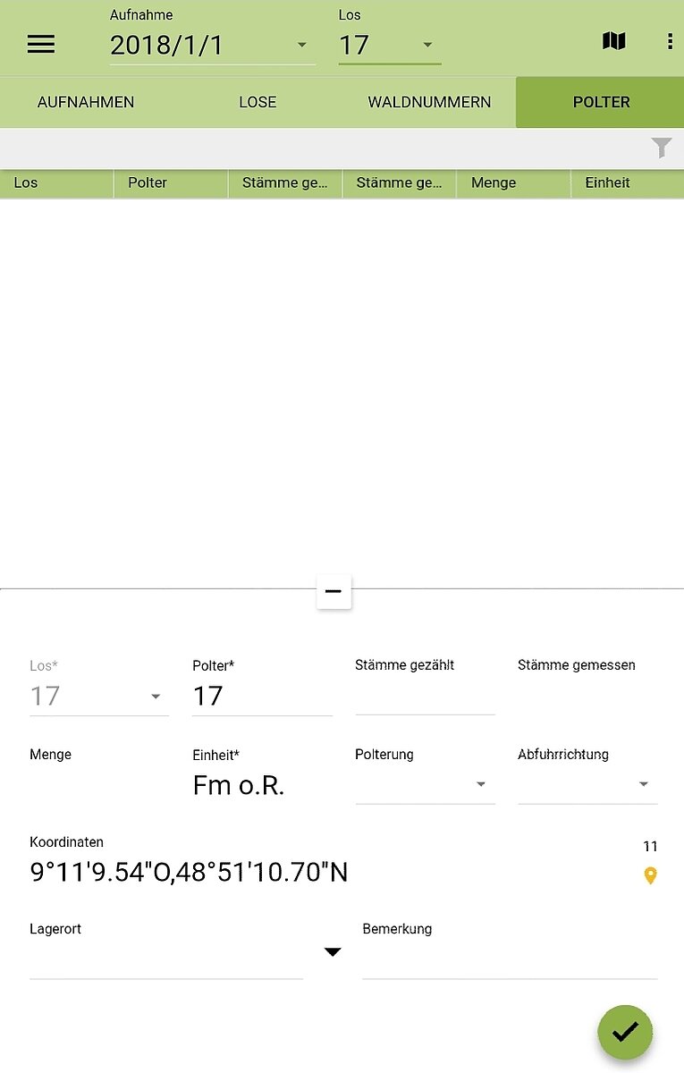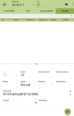 Das Polter wird bei einer GPS-Genauigkeit unter 15 Metern automatisch verortet.