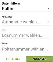 - Polter: Über die Dropdownliste wählen Sie die gewünschte Aufnahme aus. Zusätzlich können Sie nach Los und Polternummern filtern.