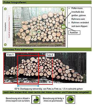 - Polter bis 4 m Breite in einem Bild, breitere Polter in mehreren Bildern aufnehmen