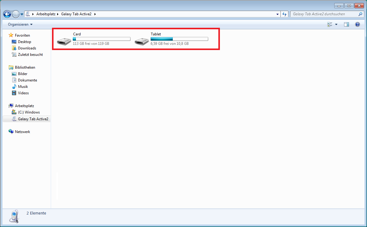 5. Zu kopierenden Dateien/Ordner suchen - z.B. Eigene Fotos unter: Galaxy Tab Active2\Card\DCIM\Camera